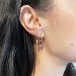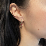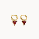 These mini hoops are the perfect Spring/Summer earrings to add a pop of colour to your ear stack. The unique triangle shape in a rich ruby red, gives a bold and edgy look and feel.